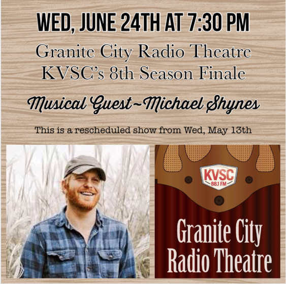 KVSC’s 8th season of Granite City Radio Theatre features local, and now internationally known, musician Michael Shynes. He grew up in Little Falls, Minnesota but has performed at global events–we’re thrilled have his music round out Granite City Radio Theatre!