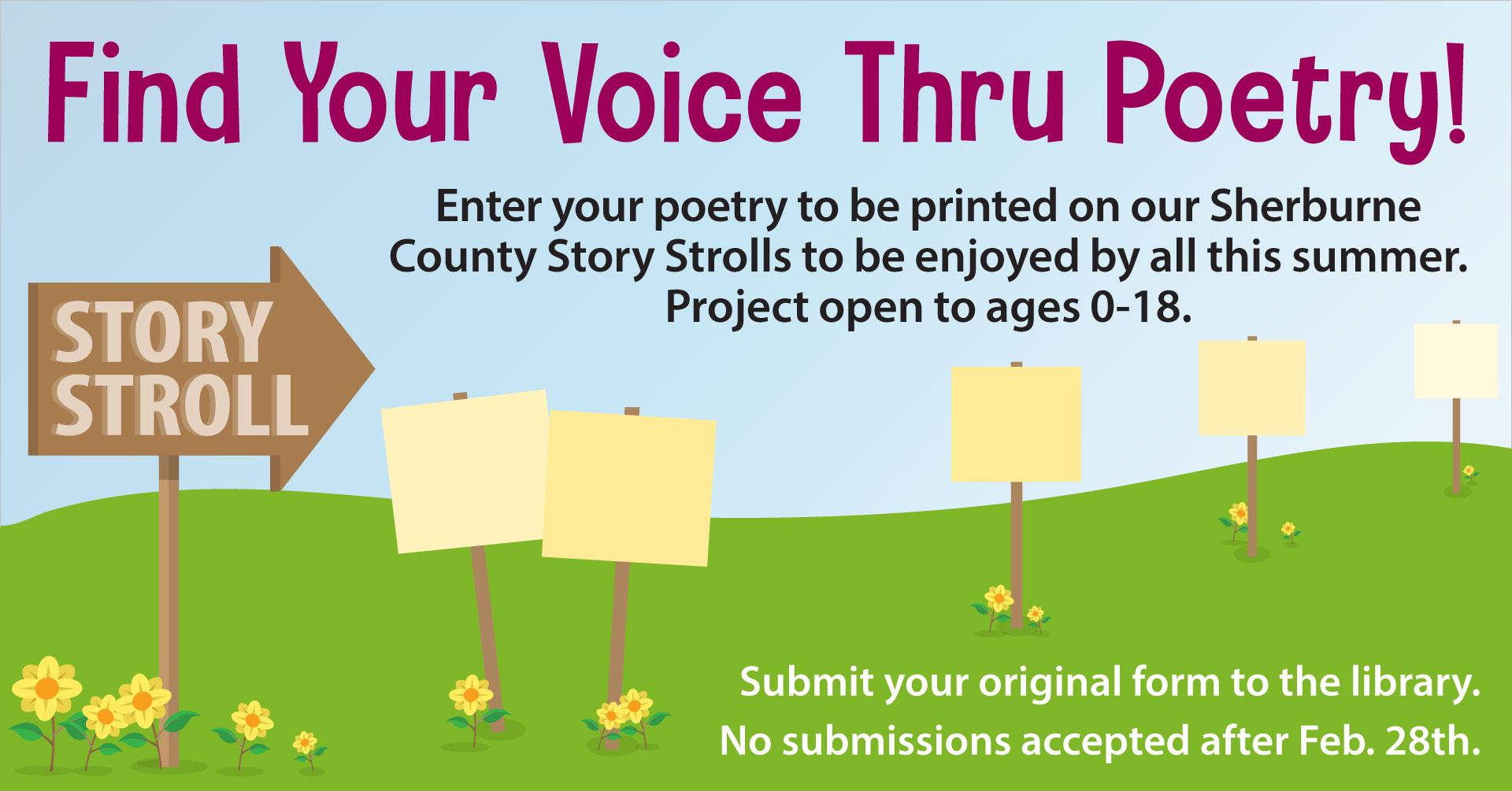 They’re hosting a Poetry Project for those up to 18 years old, and providing more of a Poetry Path in the parks, featuring submitted work! The theme of the project is Find Your Voice!  Submitted poems will be posted along paths in Elk River’s new and improved Orono Park and well as Sherburne County’s Grams Park, Bridgeview Park and Oak Savanna Park throughout the summer reading program.