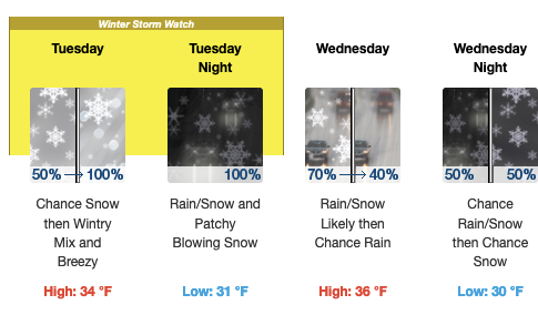 • The Twin Cities has a chance of light icing tomorrow, then a mix of mostly rain or freezing rain Tuesday evening.