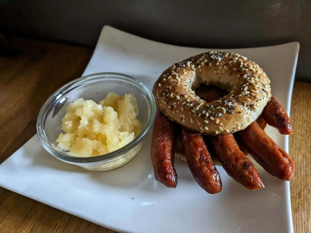 A hot dog sandwich on an everything bagel for Everything Everywhere All at Once (2022), with a side of Miep’s applesauce for Women Talking (2022).