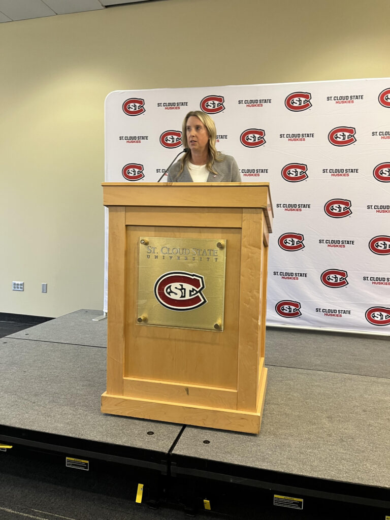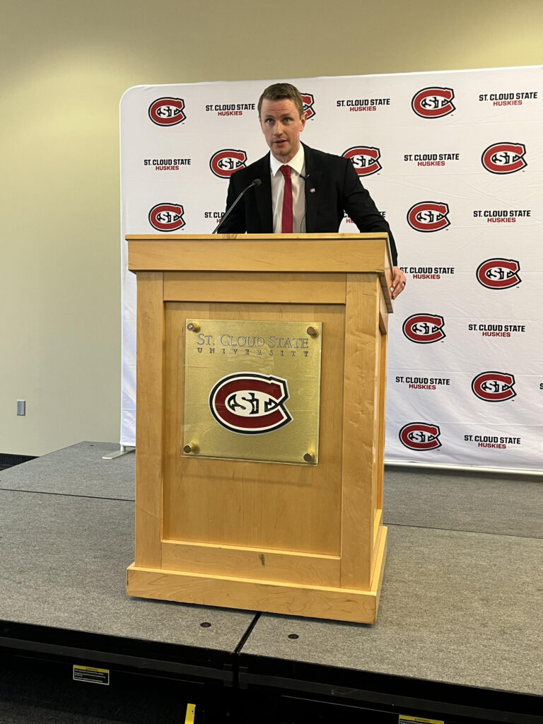 -On Monday, April 13, St. Cloud State athletics officially introduced Nick Oliver as the new men’s hockey head coach at SCSU. An introductory press conference was held at 3:00 p.m. on Monday. Athletics Director Holly Schreiner, SCSU president Dr. Gregory Tomoso, and Oliver himself all spoke at the event.