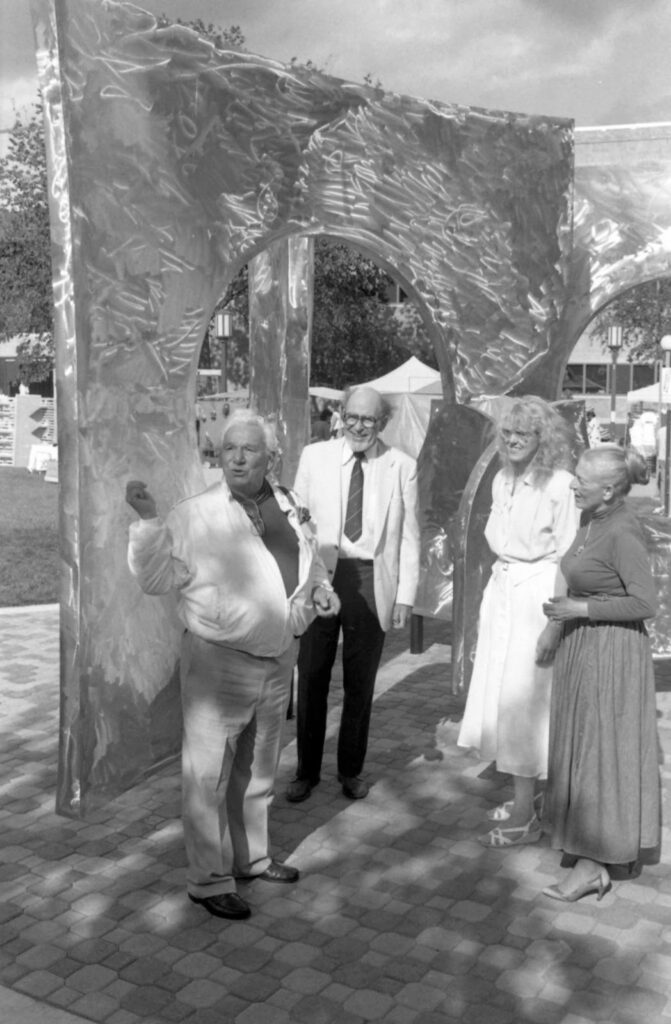 At the beginning of 1988, artists across the country were asked to submit ideas for an exterior sculpture for SCSU to a local committee. Four of these artists, including Huntington, Janet Lofquist, John Van Alstine, and Alexander Hunenko, were selected to present models of their sculptures during a November 15, 1988, event at Atwood Memorial Center, SCSU.