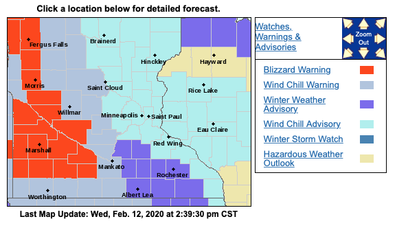 Wind Chill Warning for St. Cloud, Blizzard Warning for Western Minnesota